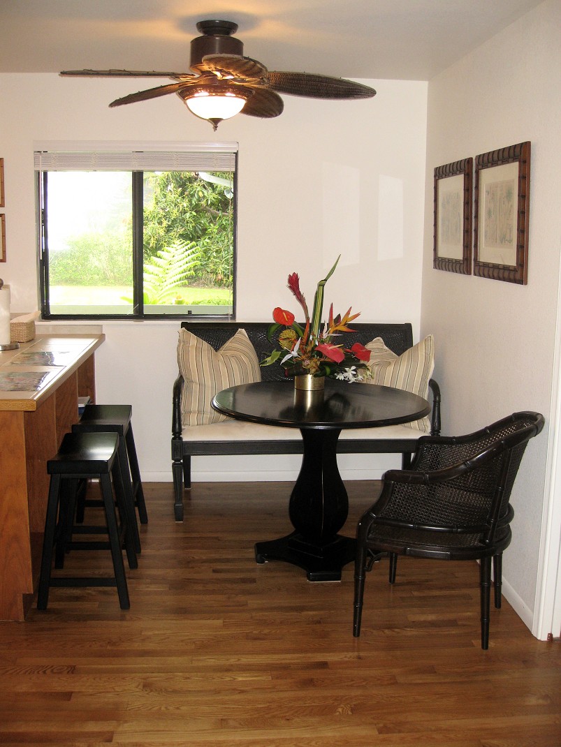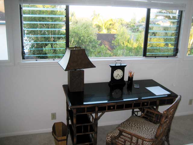 Wireless Internet Access is free throughout the house and yard. There is also wired internet access in the upstairs study that overlooks the blue Pacific. The view will help you compose email or letters while seated at the bamboo desk. It’s very relaxing to watch the ocean from here. Though my favorite view is of the Na Pali mountains and the peak called Bali Hai. So named because of the movie South Pacific.