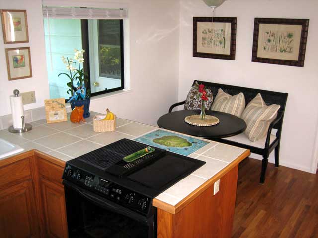 While the food is cooking, you can sit on the back porch (lanai) and watch the birds play in the yard or the frogs in the Koi pond. They both provide hours of low key entertainment. There is also a coconut tree, an avocado tree, as well as a large hibiscus and plumeria flowering trees. There are always flowers blooming in the backyard.