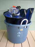 Snorkeling gear is also provided for the adventuresome. The masks, fins, and snorkels are in individual mesh bags that you can tote to the beach. There are six sets and they come in small, medium, and large.